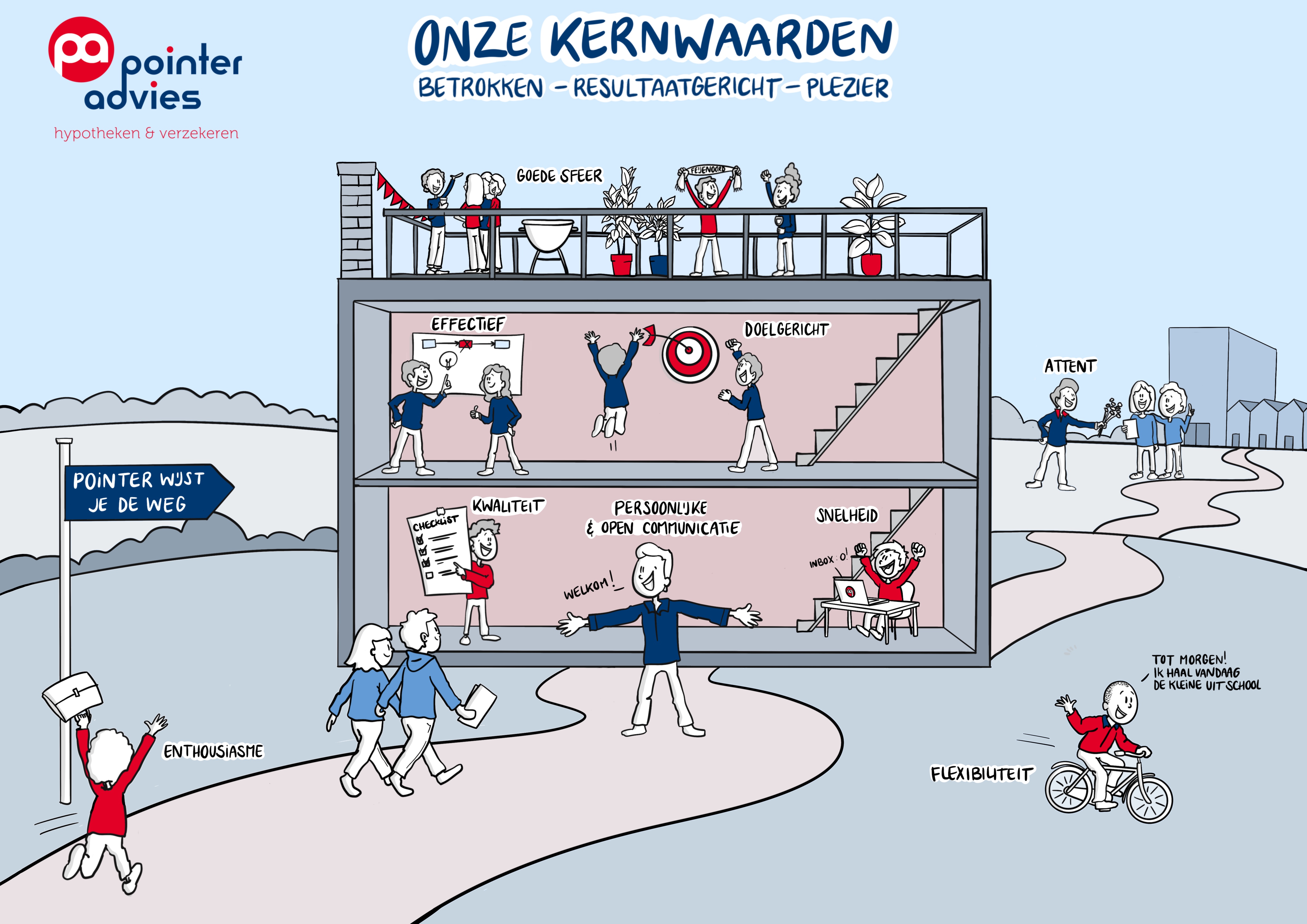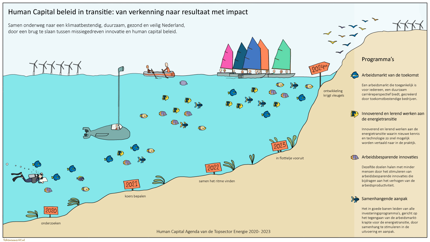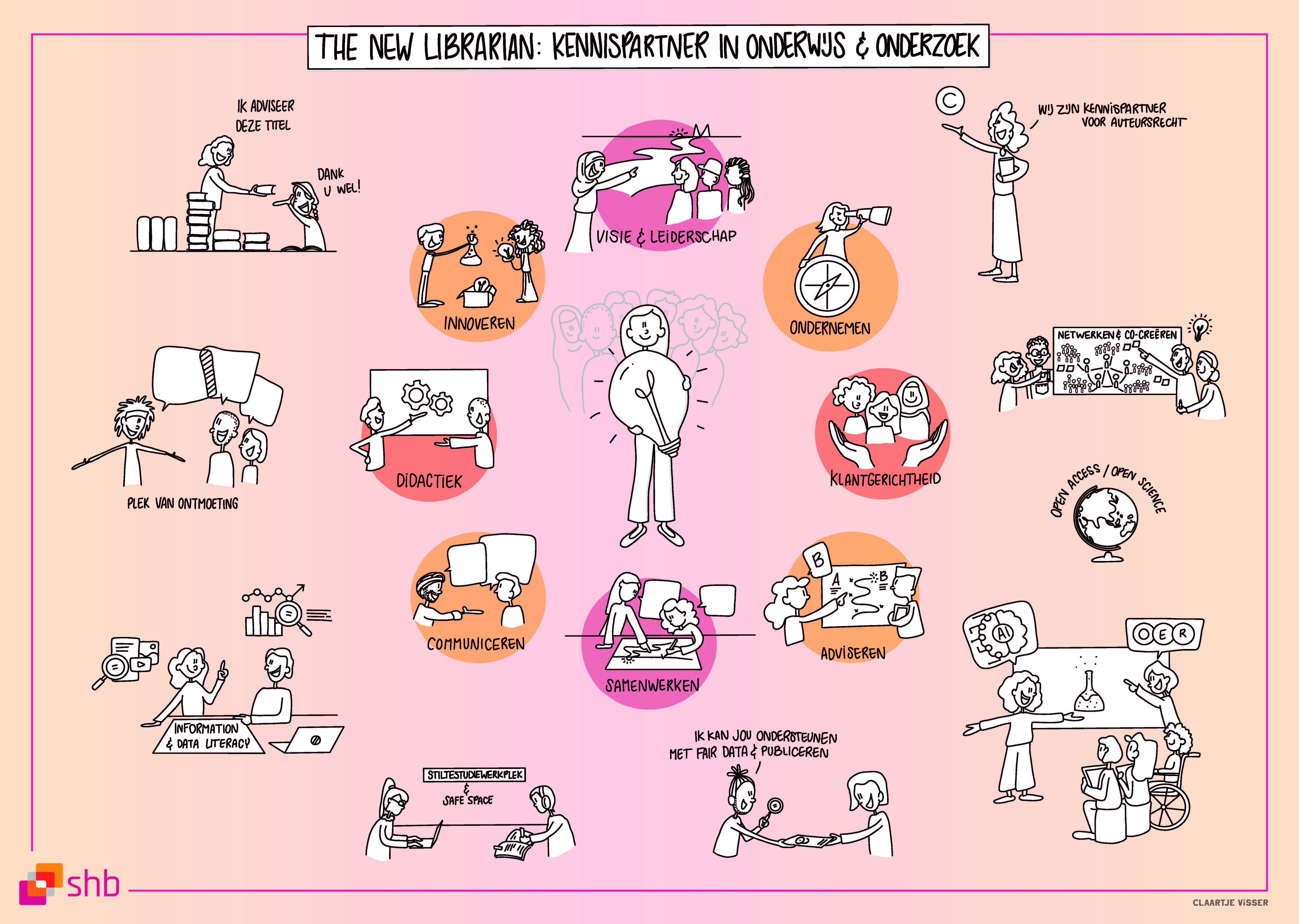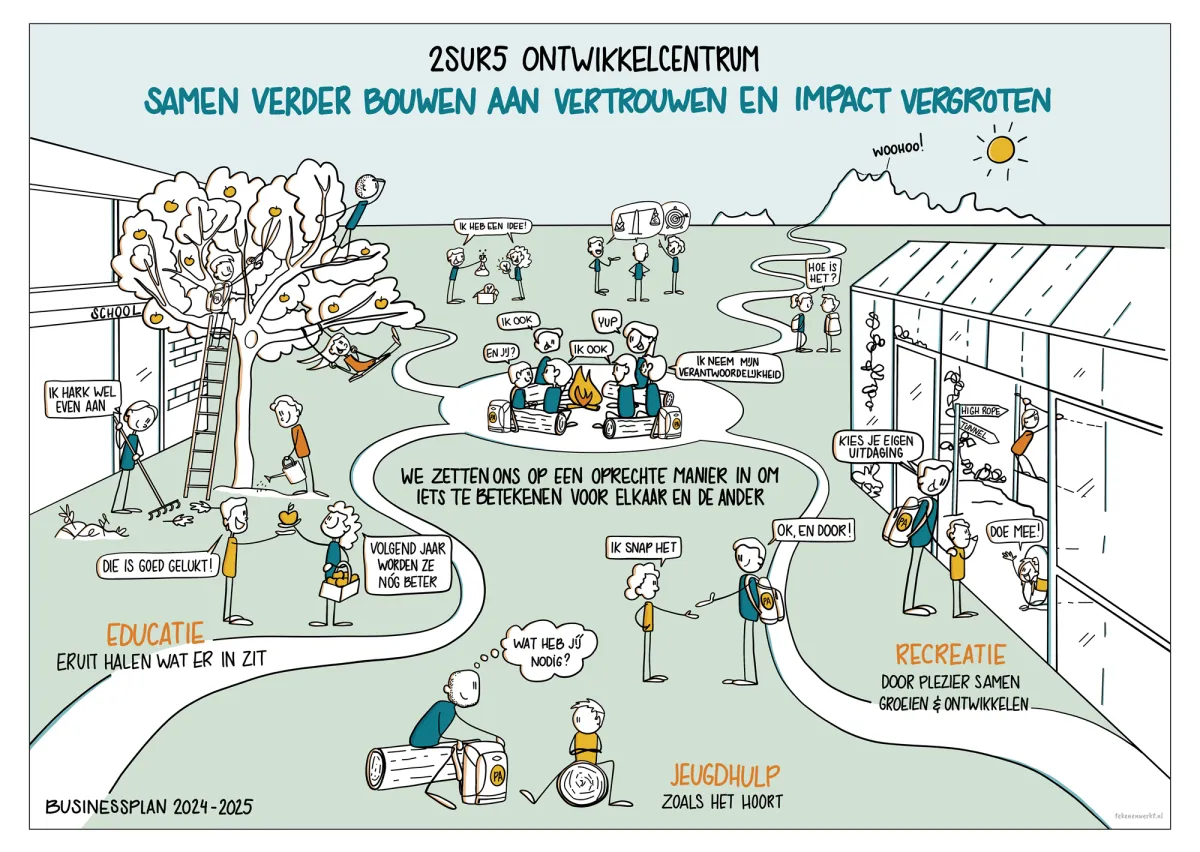 De praatplaten en tekeningen gebruik je in presentaties, teamoverleggen en interne communicatie, zodat mensen niet alleen weten wat de bedoeling is, maar ook voelen waarom het belangrijk is en hoe zij daaraan bijdragen.